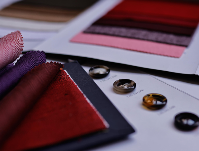 2. Selección de tejidos y detalles: Elige entre más de 8.200 opciones de tejidos, botones, cortes y acabados.